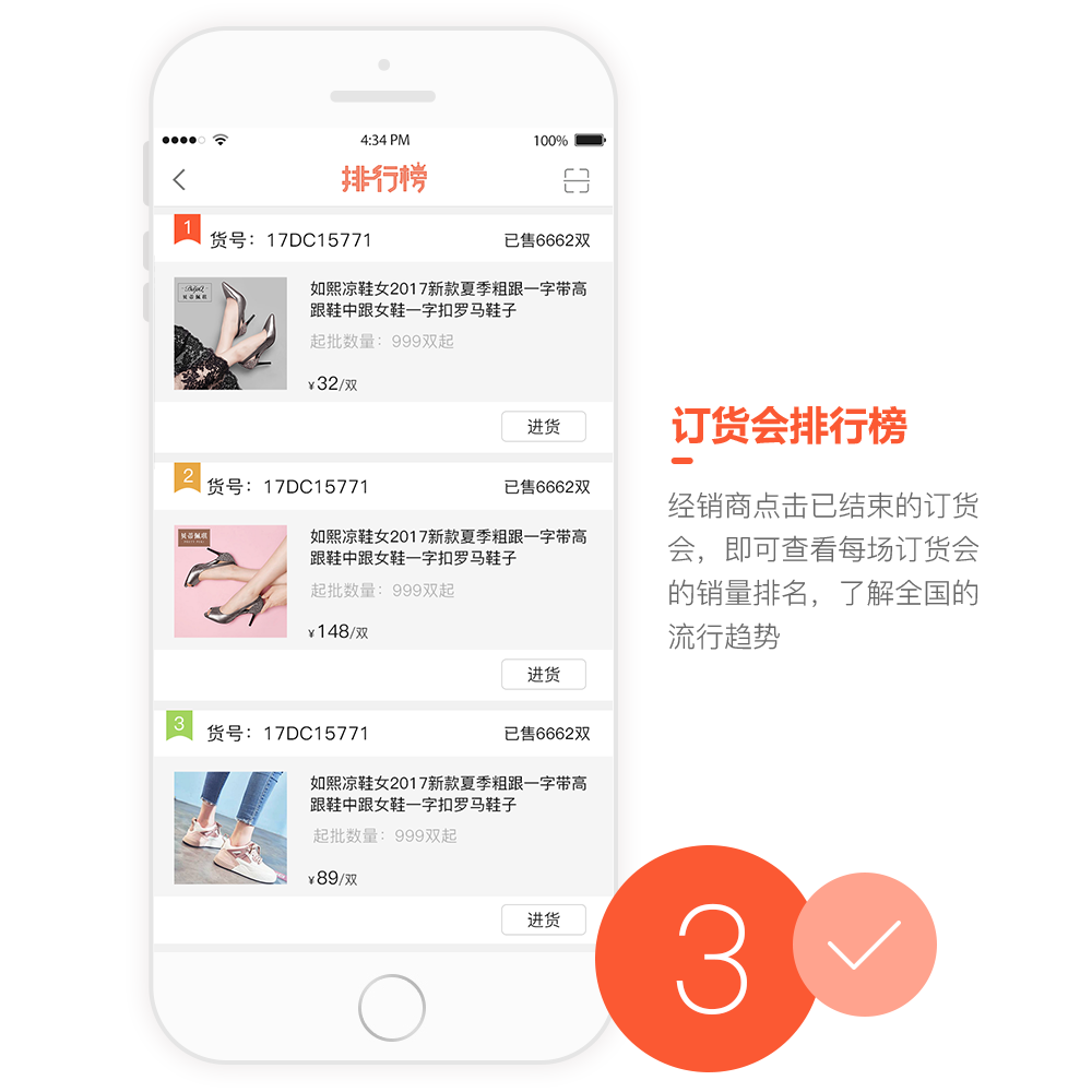 專注鞋類會(huì)銷的B2B訂購(gòu)平臺(tái), 經(jīng)銷商在新品訂貨會(huì)現(xiàn)場(chǎng)可直接通過APP掃碼查詢產(chǎn)品詳情與價(jià)格,完成現(xiàn)場(chǎng)采購(gòu)與預(yù)訂,也可以通過平臺(tái)遠(yuǎn)程下單補(bǔ)貨,有效的提高了經(jīng)銷商的采購(gòu)效率和市場(chǎng)反應(yīng)速度,加快了廠家的庫(kù)存流轉(zhuǎn)和資金回流速度,形成從訂單數(shù)據(jù)反饋,到按需生產(chǎn),再到新品改進(jìn)的閉環(huán)流程,真正實(shí)現(xiàn)對(duì)經(jīng)銷商的數(shù)據(jù)化管理和以市場(chǎng)需求為導(dǎo)向的經(jīng)營(yíng)模式